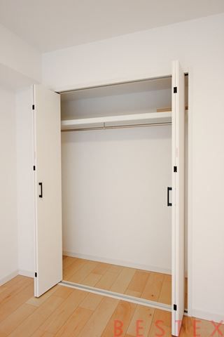 クローゼットも完備されております。上部には棚が設けられれており使い勝手も良さそうな収納となっております。