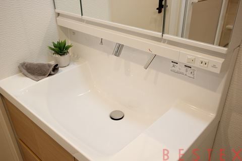 洗面台横には洗濯機置場もございますのでフィッティングルームとしても利用可能です。