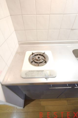 キッチンは1口ガスコンロを採用し、自炊派の方にも嬉しい仕様です。調理器具や食器をすっきりと整理できる収納スペースも備えており、限られた空間の中でも快適にお料理を楽しめます。