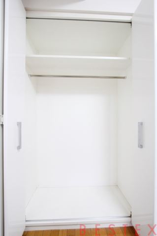 約6帖の居室は明るいフローリング仕様で、お掃除がしやすく、家具のレイアウトもしやすい形になっています。クローゼットもしっかり備わっており、衣類や小物を収納することで居室を広々と活用できます。