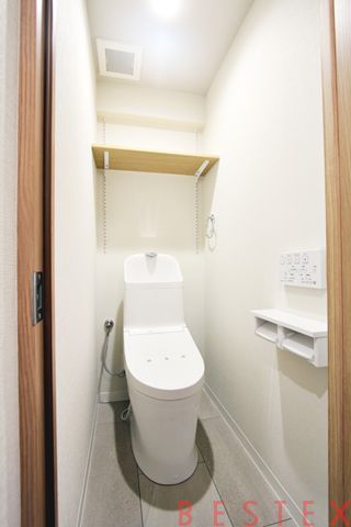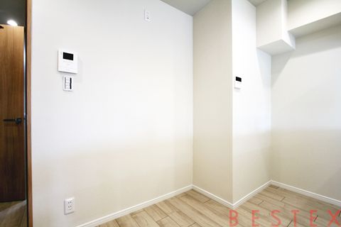 水回りも一新されており、高級感漂うバスルームには追い焚き機能や浴室乾燥機を完備。三面鏡付きの独立洗面台や、温水洗浄便座付きのトイレ、上部に収納を備えた洗濯機置き場など、使い勝手の良さが追求されています。さらに、玄関のシューズボックスにはお出かけ前のチェックに便利な姿見鏡が備わり、廊下部分にも奥行きのある収納が設けられるなど、限られたスペースを有効活用した設計が魅力です。バルコニーは南向きで陽当たりが良く、高速道路側に面していますが、二重サッシを採用しているため室内の静粛性が保たれており、10階ならではの開放的な眺望を心ゆくまで楽しめます。