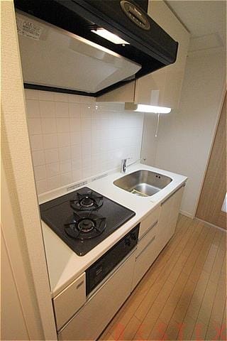 キッチンはシステムキッチンで、ガスコンロは2口ございます。