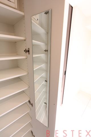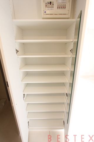 すぐ左にはちょっとした収納がございます。