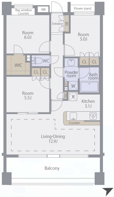 ご成約済み | ー | ー | 北西 | 5階 | 2LDK | 57.89㎡ | |