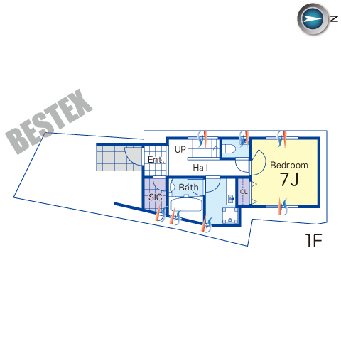 1階は洋室約7帖(納戸申請)がございます。クローゼットも完備されておりますので居室として利用可能です。
