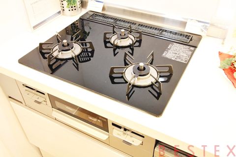 3口ガスコンロ・グリル搭載。