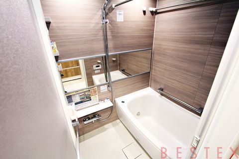 水回り設備もハイグレードな仕様に一新されています。広々としたバスルームには、日々の疲れを癒やす追い炊き機能や、天候を気にせず洗濯物を干せる浴室乾燥機を搭載。三面鏡を備えた大型の独立洗面台や、温水洗浄便座付きのトイレなど、清潔感と機能性を兼ね備えた設備が整っています。