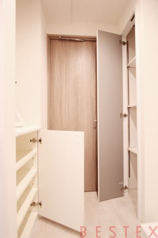水回りに収納棚があるので、タオルや下着類も収納でき何かと便利ですね。