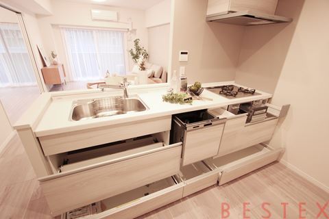 リビングと対面式のカウンターキッチンで調理スペース・収納スペースも十分に確保されております。
