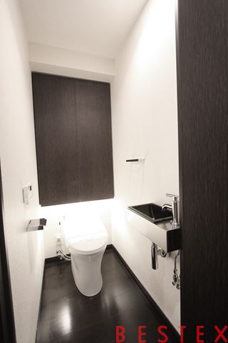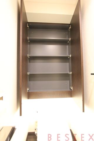 お手洗いは温水洗浄便座完備です♪収納棚もしっかり確保!