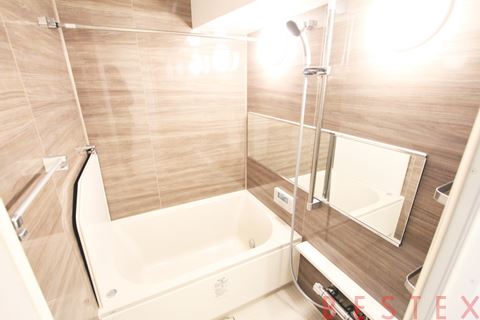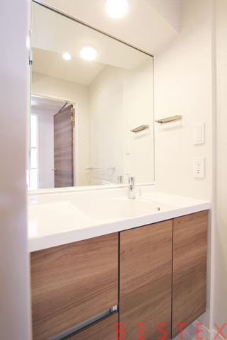 水回りもハイグレードな設備が充実。大きな一枚鏡が印象的な独立洗面台と、便利なサイド収納。広々設計のバスルームは追い炊き機能・浴室乾燥機付きで、一日の疲れを癒します。トイレはもちろん温水洗浄便座を搭載しています。