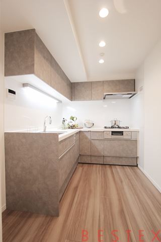 L字型のキッチンで約4帖のキッチンスペースがございます。