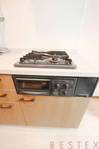 2口ガスコンロと照明付きレンジフード付きです♪
