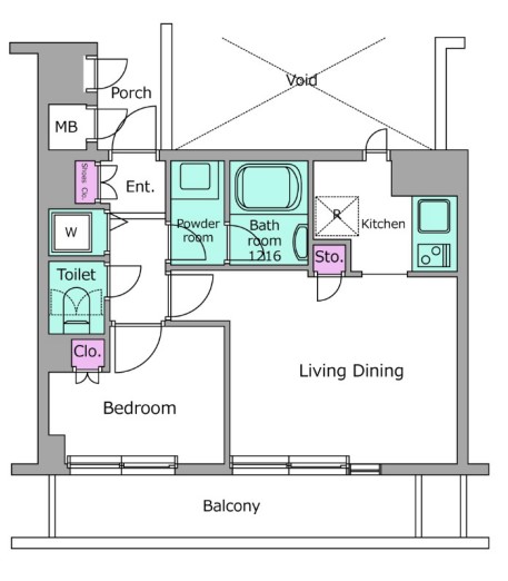 約59㎡のゆとりある1SLDKタイプで、居住性と機能性を兼ね備えた室内空間が魅力です。リビング・ダイニングは採光が確保され、家具配置の自由度が高い整った形状のため、ソファやダイニングテーブルを置いても動線に余裕があります。カウンターキッチンは作業スペースが広く、収納も充実しており、調理をしながらリビングの様子を見渡せる点が特徴です。サービスルームは収納部屋としてはもちろん、在宅ワーク用の書斎や趣味スペースとしても活用可能。寝室にはクローゼットが備わり、衣類や生活用品をすっきり整理できます。洗面室・浴室・トイレはそれぞれ独立しており、忙しい朝や来客時にも使いやすい設計。全体的に落ち着いた内装で、日々の暮らしを丁寧に支えてくれるお部屋です。