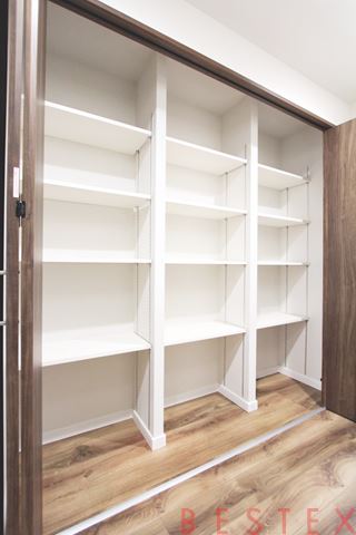 奥行きのあるキッチン収納。