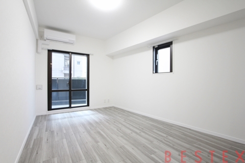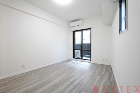 お部屋は1R・22.48㎡、希少な角部屋。リノベーション済みの室内は、清潔感とデザイン性を兼ね備え、シンプルながらも洗練された印象です。居室は家具配置がしやすく、一人暮らしでもゆとりを感じられる空間設計。採光・通風にも配慮され、明るく快適にお過ごしいただけます。