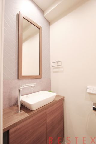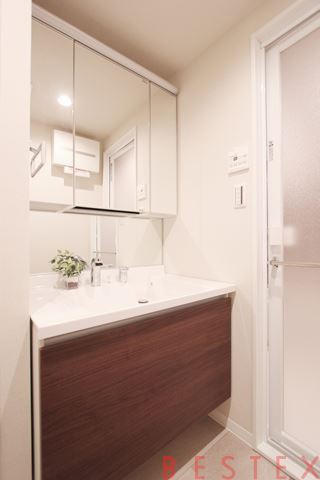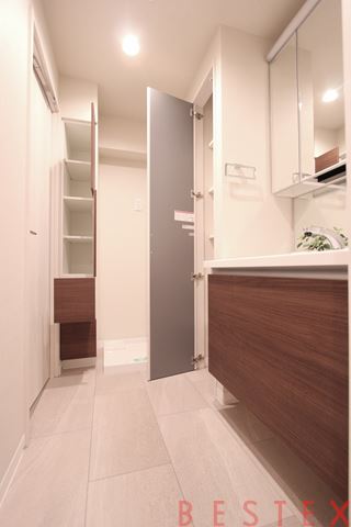 パウダールームも広く収納棚もございます。