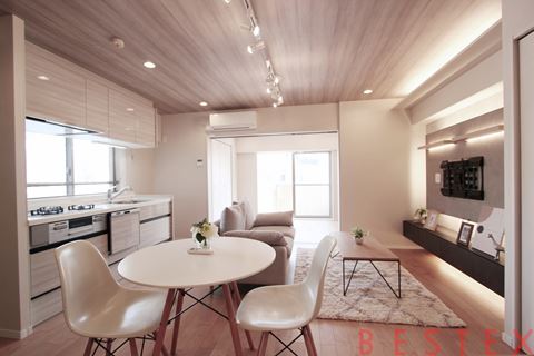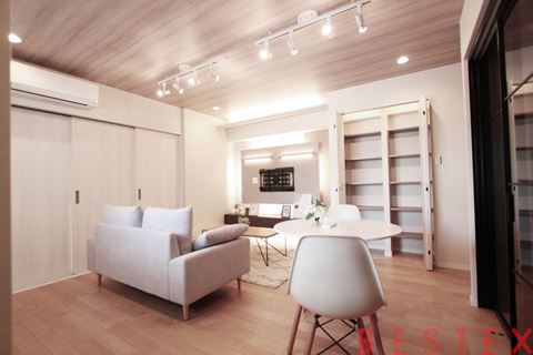新規リノベーションにより、床・壁・水回りすべてが美しく一新され、快適な新生活をそのまま迎えられます。家具・エアコン付きで、洗練されたインテリアが調和する上質な住まいです。