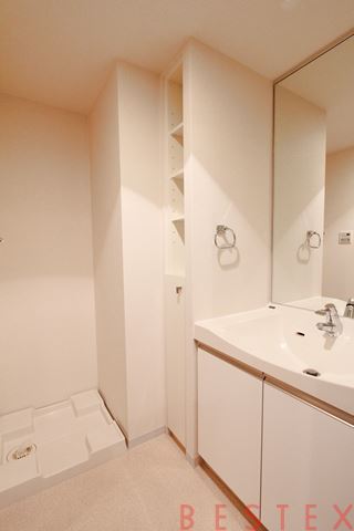 洗面台の下と左側には収納がございますので、洗面用具やタオルなどもすっきりと収納して頂けます♪