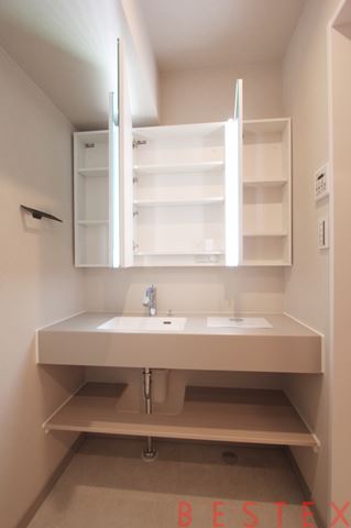 三面鏡仕様の独立洗面台で収納スペースも豊富です。
