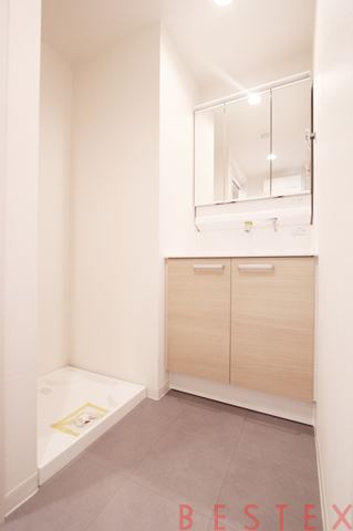 バスルームは、洗面室とトイレを廊下から独立させた使い勝手の良いセパレート設計です。パウダールーム(洗面室)には、身支度に便利な独立洗面化粧台を配し、脱衣スペースも確保。トイレはプライバシーに配慮した配置となっており、毎日の暮らしの快適さを追求したサニタリー構成に仕上げられています。