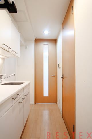 廊下の左右に水回り、ドアを抜けると洋室になります。