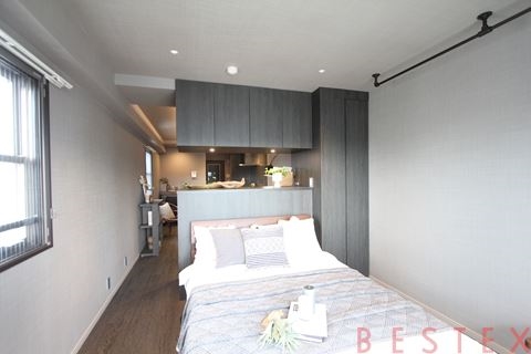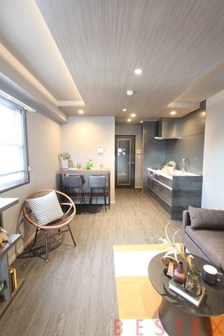 ホワイトベージュを基調とした上質で温かみのある内装が魅力の1Rタイプ。約11帖のリビングダイニングキッチンは開放感があり、間接照明が空間に奥行きを演出します。大きめのソファやローテーブルを配置してもゆとりがあり、ゆったりとくつろげるレイアウトが可能です。キッチンは作業スペースもしっかり確保されており、自炊派の方にも嬉しい設計。収納はクローゼットに加え、シューズボックスやリネン庫も備わっており、生活感を抑えたすっきりとした暮らしが叶います。パウダールームやバスルームも清潔感のあるデザインで、水回り設備も充実。バルコニー付きで採光も確保されており、明るく心地よい住空間が広がります。洗練された内装と機能性を兼ね備えた、ワンランク上の都市型レジデンスです