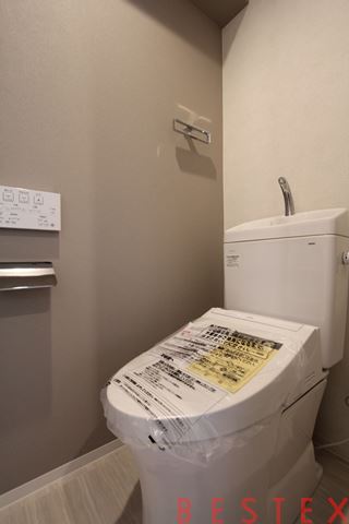 ウォシュレットや収納棚も完備。