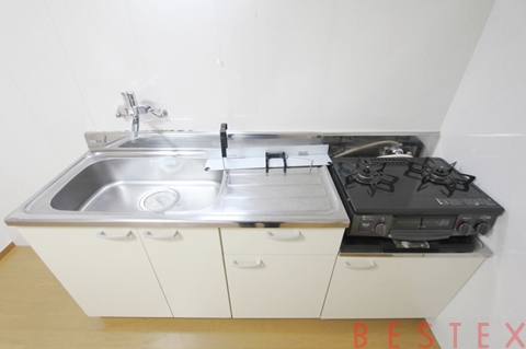 キッチンは2口ガスコンロ(コンロ設置型)です。