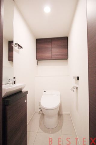 バスルームは、ゆったりと寛げる1317サイズの浴室を確保しています 。雨の日のお洗濯に重宝する浴室換気乾燥機や、いつでも温かいお湯に浸かれる追い焚き機能を標準装備 。洗面室には機能的な独立洗面台を配し、トイレには快適な温水洗浄便座を備えるなど、築浅分譲マンションならではの高機能なサニタリー空間が魅力です