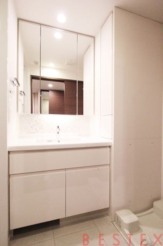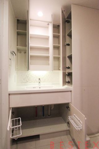 鏡の内側などにも収納があるので、化粧品や日用品などの小物の整理もできます。