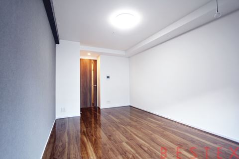 メインとなる居室は約15.3㎡(9.5帖)の広さがあり、インテリアの配置にこだわりたい方にも最適です。床材には高級感のある素材が使用されており、室内全体に落ち着いた雰囲気を演出しています。また、1階のお部屋ながら南向きのバルコニーに面しているため、日当たりが良く、明るく開放的な住空間を実現しています。