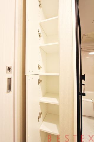 パウダールームにはうれしい収納付き。