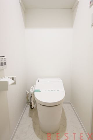 内装は白を基調としており、洗面室には独立洗面台やウォシュレット付き便座がございます。