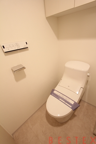 トイレはウォシュレット付きで壁掛けリモコンがついているスッキリしたタイプです。