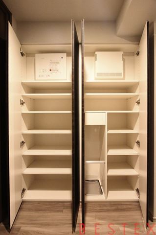 各所収納たっぷり、玄関には姿見も備わっており、フィッティングもらくらくです♪