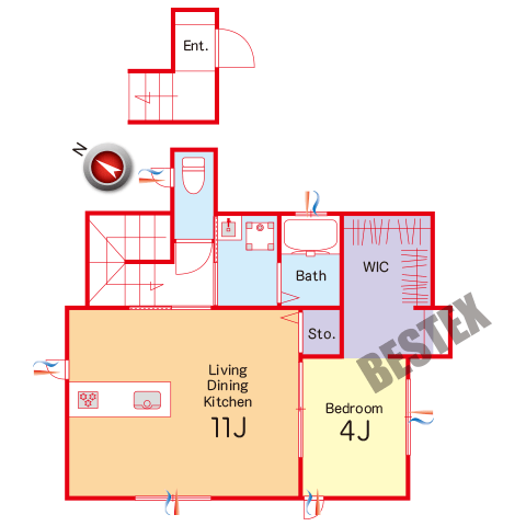 縦長の窓から光を取り入れる形。まるで一戸建ての様な雰囲気を感じさせます♪