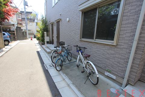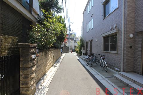 物件前の道です。それでは物件外観・共用部分のご紹介に移っていきましょう!
