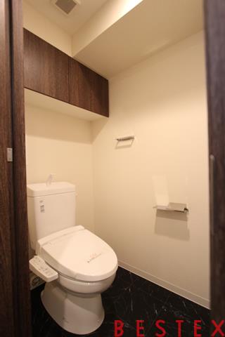 ウォシュレット付きのトイレです。上部には収納スペースもございます!