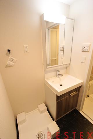 脱衣所には独立洗面台と洗濯機スペースがございます。
