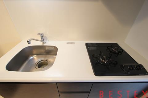 2口ガスコンロ付きです。シンク、作業スペースも広めです。