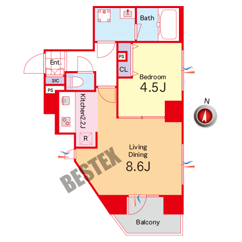 リビング10.8帖+寝室4.5帖の間取りでインターネット使用料不要のお部屋です!