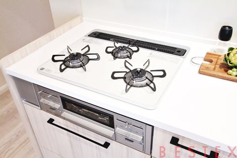 3口ガスコンロ・グリル搭載。