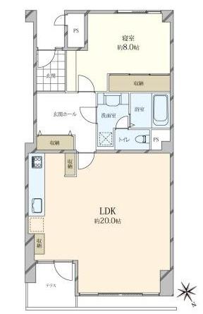 リビング約20帖の広々空間!居室はセパレートで約8帖とゆとりある1LDK!