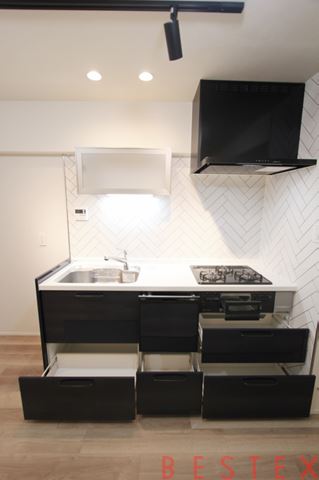 キッチンは3口ガスコンロで調理スペース・収納スペースも十分に確保されております。