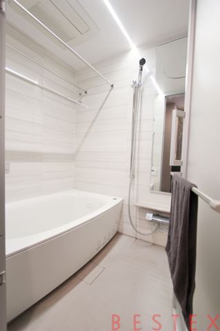 バスルームは、心身を解き放つリラックス空間として最新の設備が整えられています。築浅物件ならではの清潔感あふれるユニットバスには、雨の日のお洗濯に重宝する浴室換気乾燥機を完備。機能的なパウダールームと合わせ、日々の疲れを癒す快適な水回り環境が整っています。
