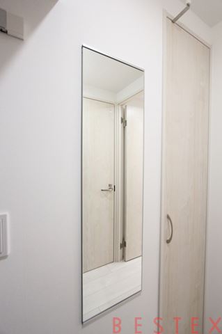 玄関には鏡があり、身だしなみチェックに便利です◎