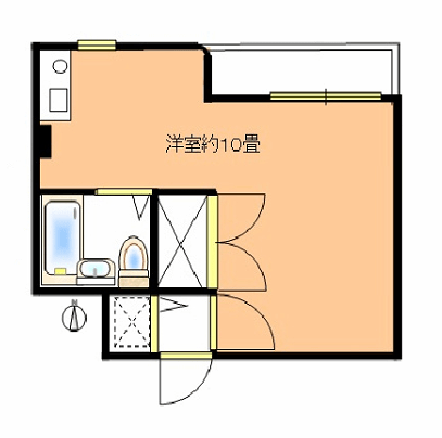 お部屋は10帖のワンルームとなっており、壁面が多く家具の配置のしやすいお部屋となっております。