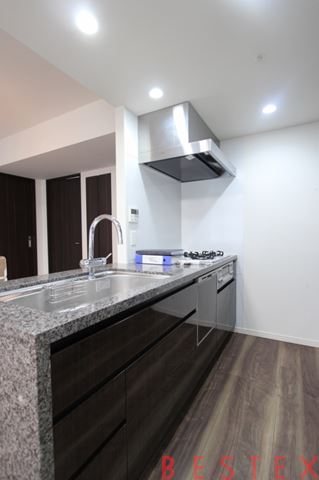 3口ガスコンロで調理スペース・収納スペースも十分に確保されております。