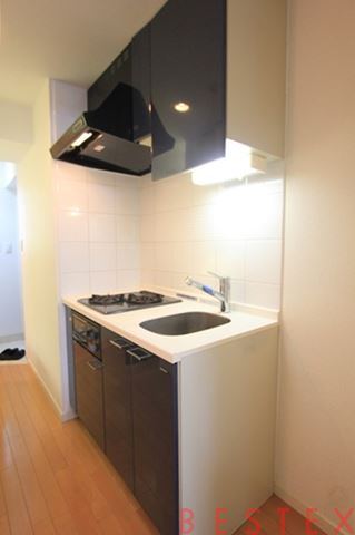 調理スペースは狭めですが2口のガスコンロ・システムキッチンでございます!お掃除楽ちんですね◎